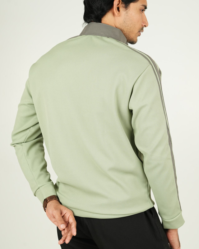 Built for guys who love effortless style, this soft-touch high GSM half zipper sweatshirt brings you the perfect mix of sporty and classy. The fresh pastel green tone, signature stripes, and high-neck zip design add a modern edge to your winter fit. This high GSM premium fabrics will give you maximum warmth and comfort on this winter.