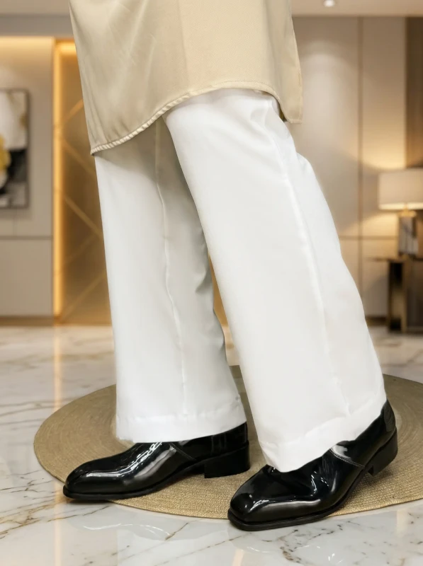 The subtle flare at the bottom creates a taller, more balanced look — especially when paired with formal shoes and a premium Panjabi.