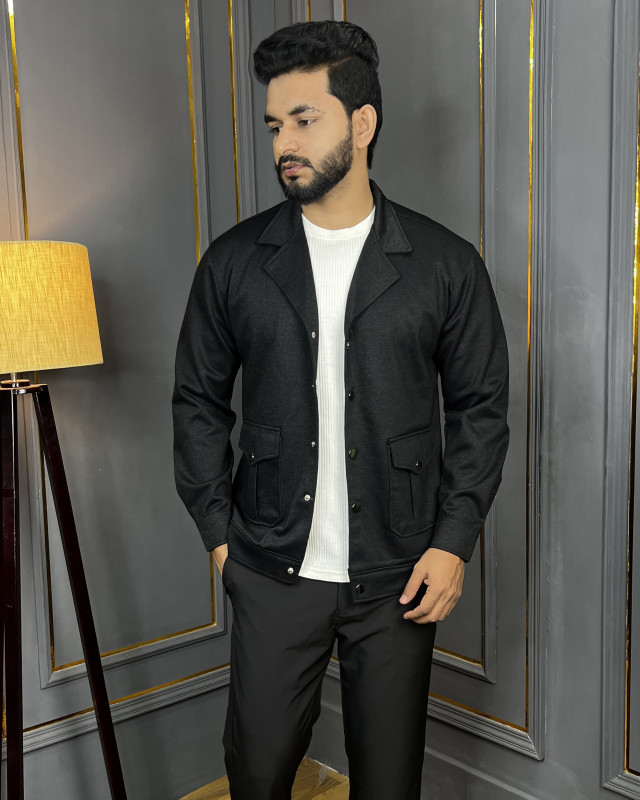 Design Excellence: Structured silhouette with dual flap pockets and metallic snap buttons for a rugged-luxury finish.