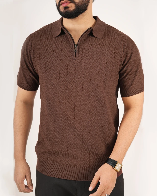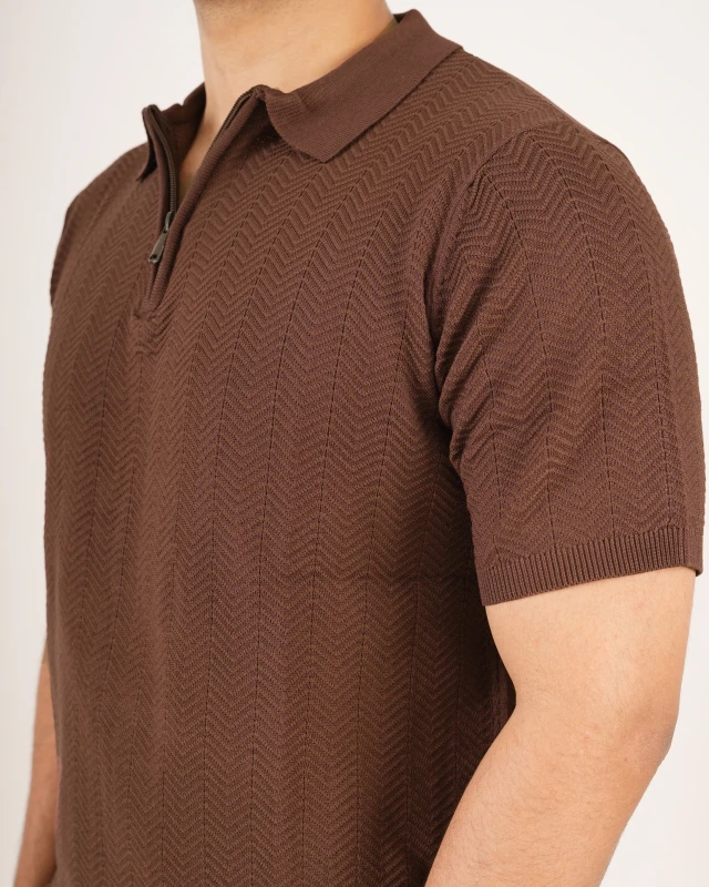 Premium Half Zipper Knit Structured Polo - Coffee Essence