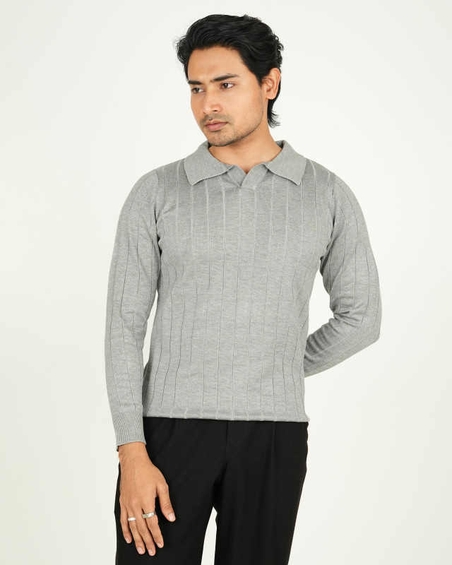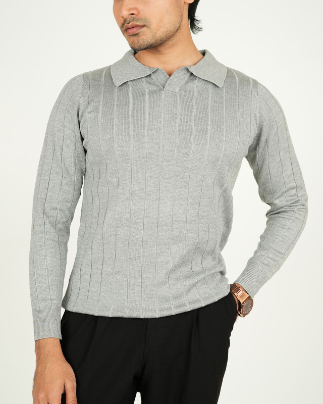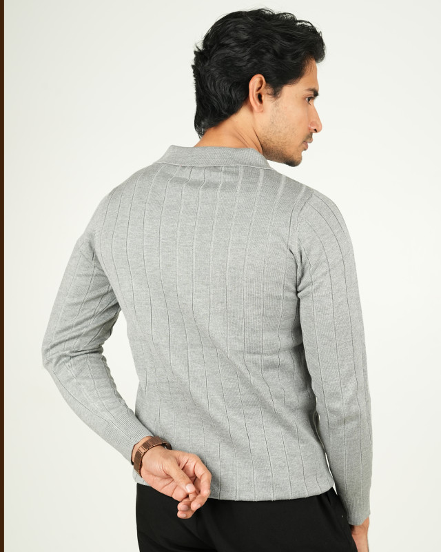 Premium Old Money Full Sleeve Textured Knit Polo - Ash