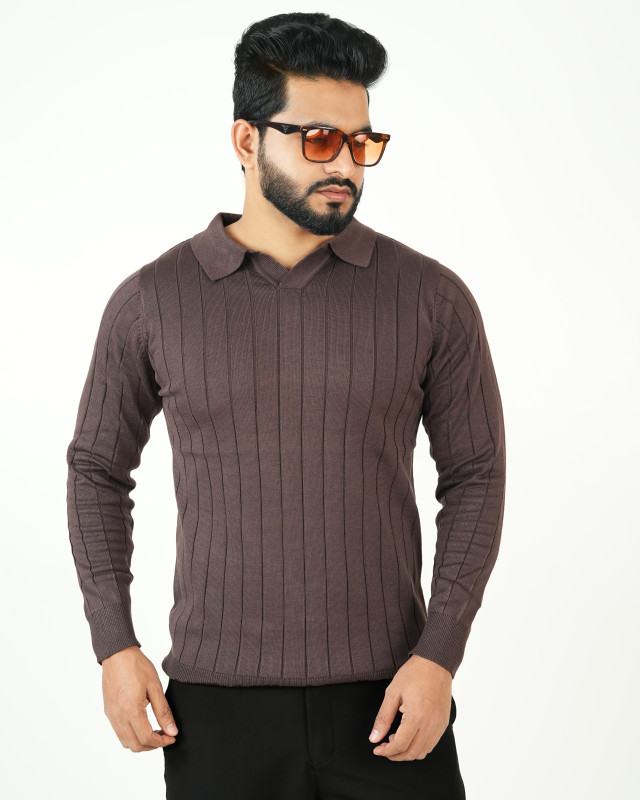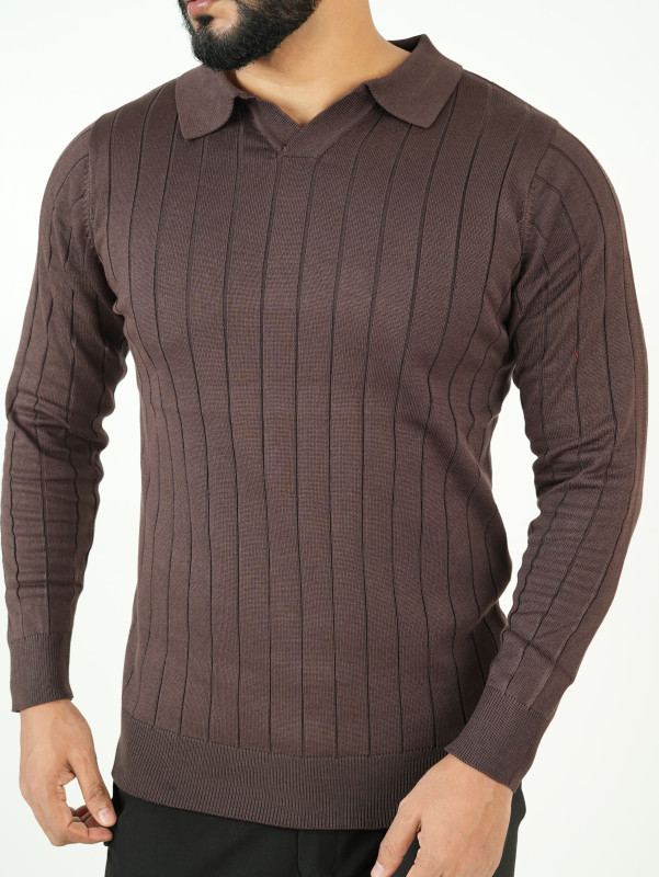 Premium Old Money Full Sleeve Textured Knit Polo - Coffee