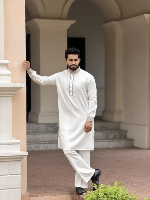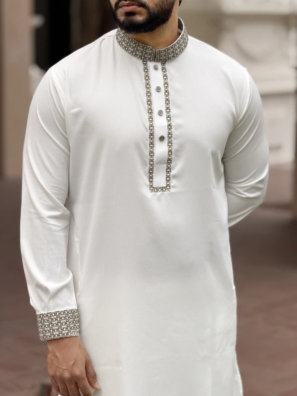 Premium Embroidery Design Panjabi - White