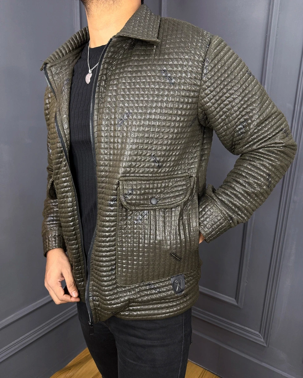 Premium Quality China Sponge Leather Zipper Jacket - Olive