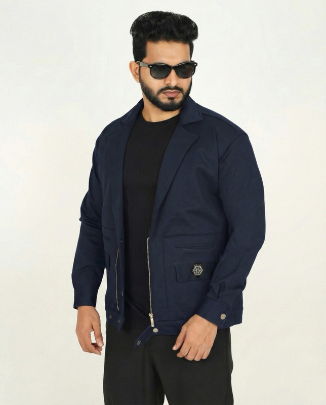 Premium Stylish Hybrid Blazer – Zipper & Snap Button Design - Navy Blue