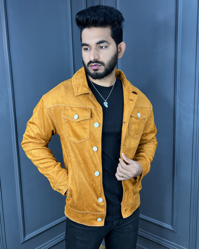 Premium Quality Suede Leather Trucker Jacket - Mustard